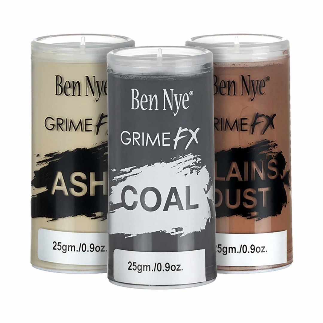 Ben Nye Grime FX Powder (formerly Character Powder) distress a characters complexion, add realism to costumes and add texture to lacerations. Grime FX Powders cling to skin, yet wash off easily.
