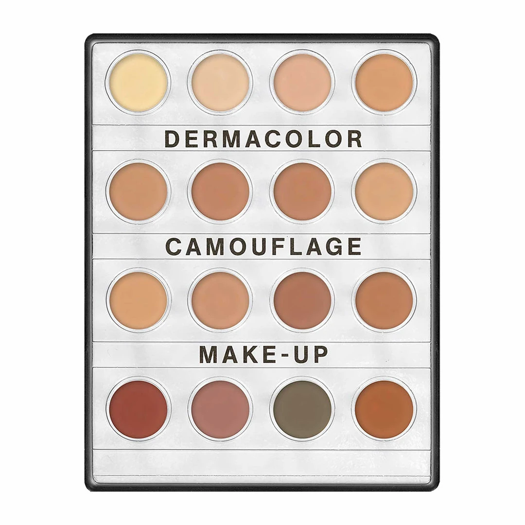 Dermacolor Camouflage Creme in the compact mini palette with 16 shades, making it ideal for professional use. Dermacolor Camouflage Creme is an highly pigmented make-up which is designed to correct and cover skin disfigurements, discolourations and tattoos.