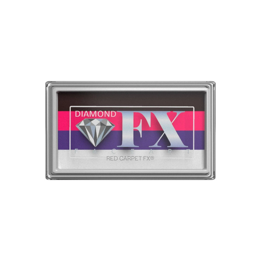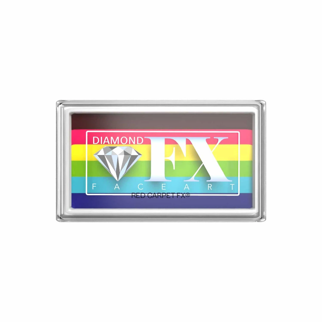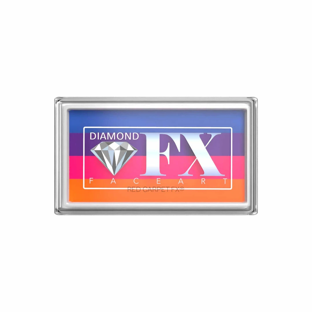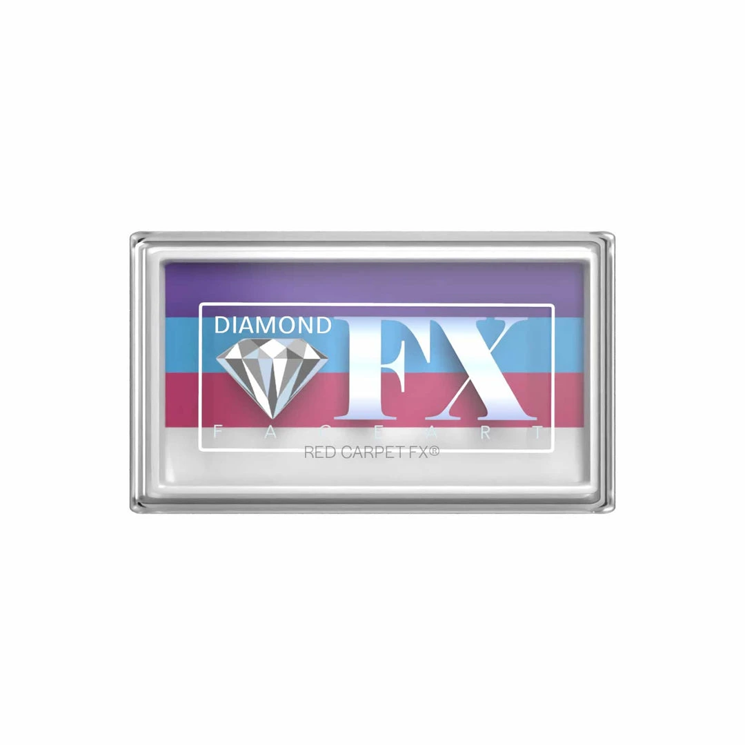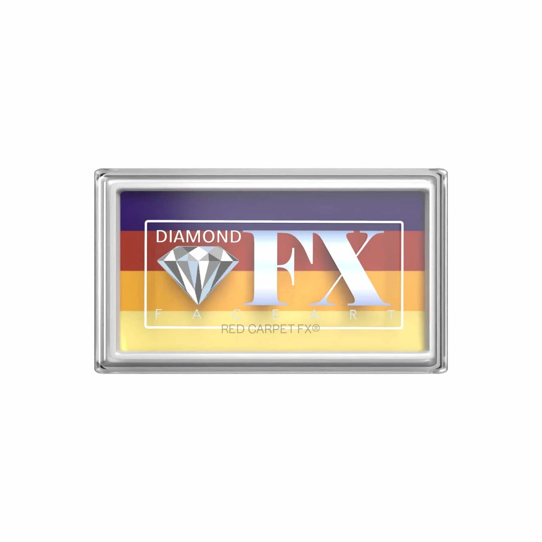 A incredibly efficient and dazzling way to create amazing designs and patterns in one stroke; Diamond FX One Stroke Split Cakes are ideal for creating multicoloured stripes and patterns that can be used to create dazzling designs, such as flowers, butterflies, unique textures and more. Diamond FX is a water-based professional face and body paint that has an advanced formula with incredibly high coverage and intense concentration of pigmentation; it is incredibly popular amongst professional face paint artists.