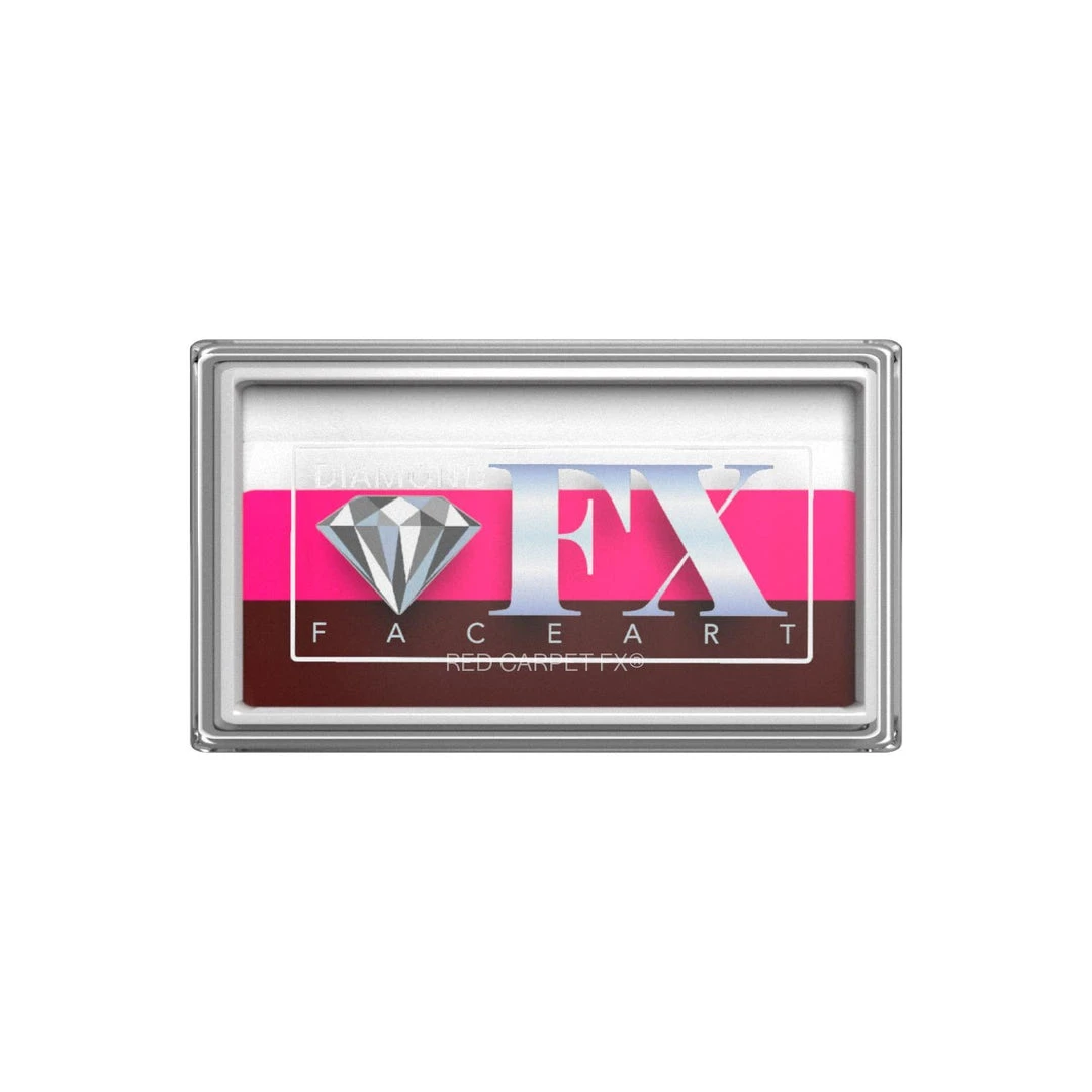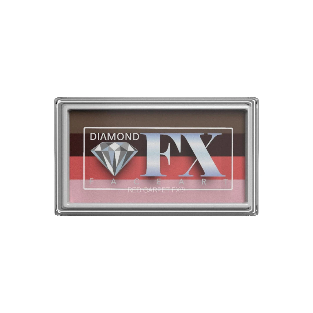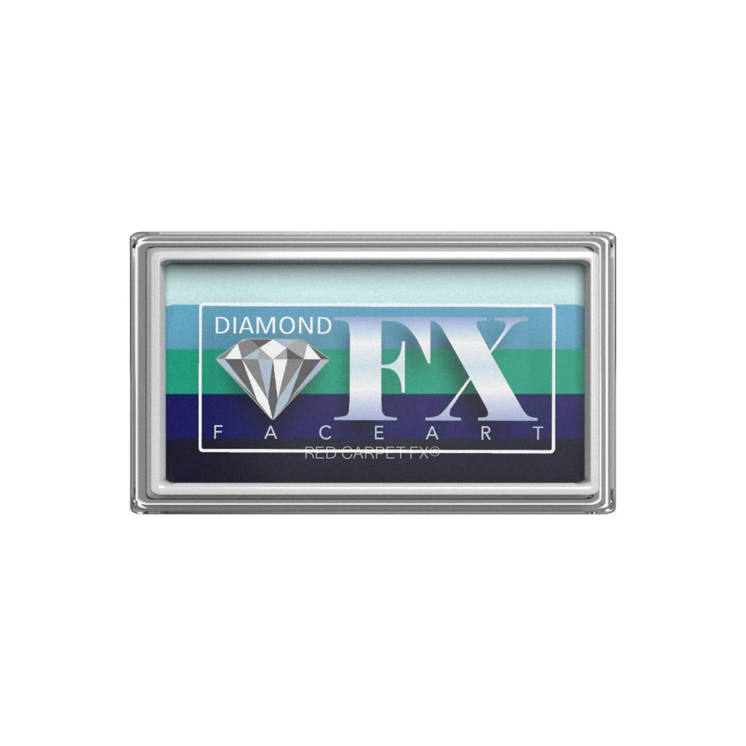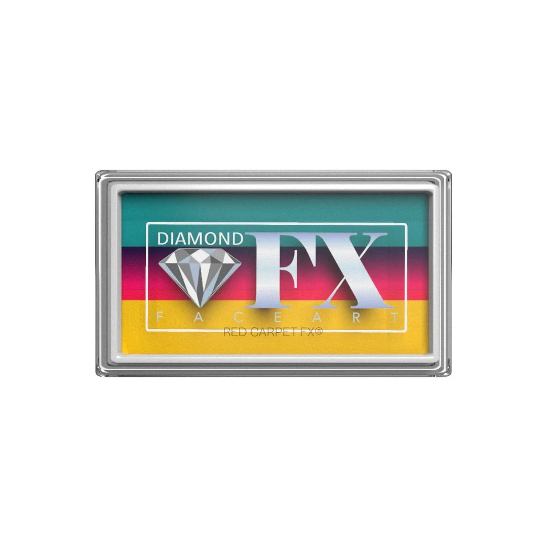 A incredibly efficient and dazzling way to create amazing designs and patterns in one stroke; Diamond FX One Stroke Split Cakes are ideal for creating multicoloured stripes and patterns that can be used to create dazzling designs, such as flowers, butterflies, unique textures and more. Diamond FX is a water-based professional face and body paint that has an advanced formula with incredibly high coverage and intense concentration of pigmentation; it is incredibly popular amongst professional face paint artists.