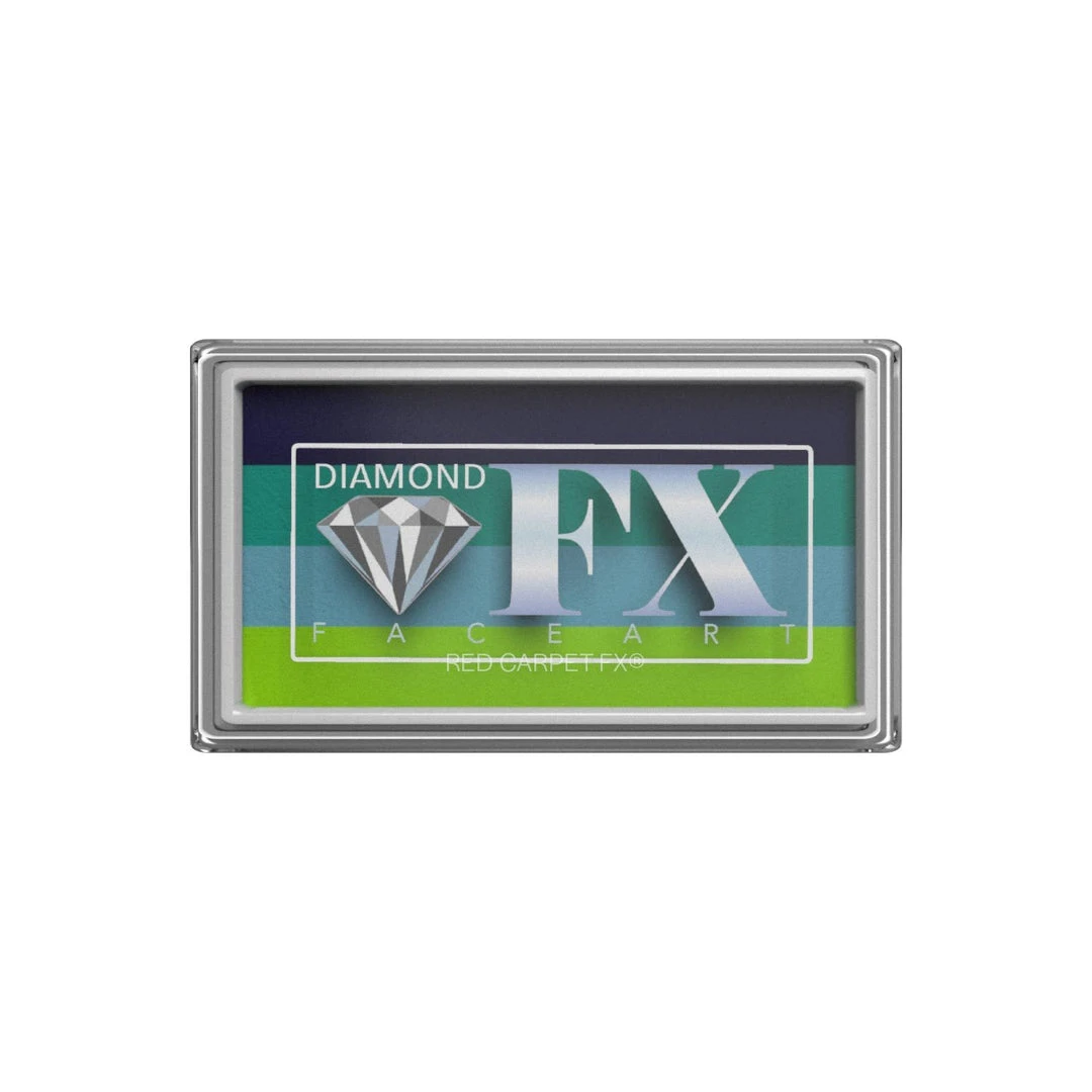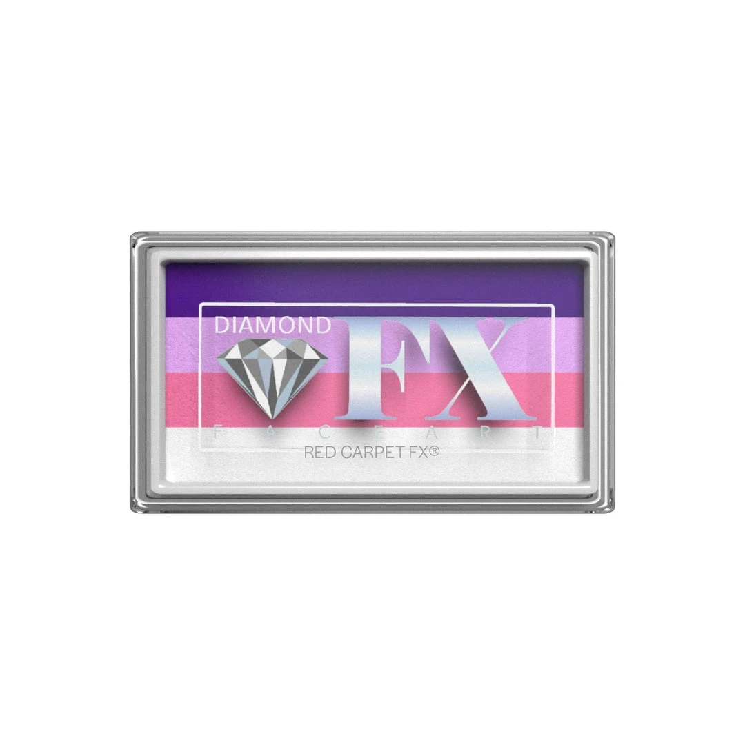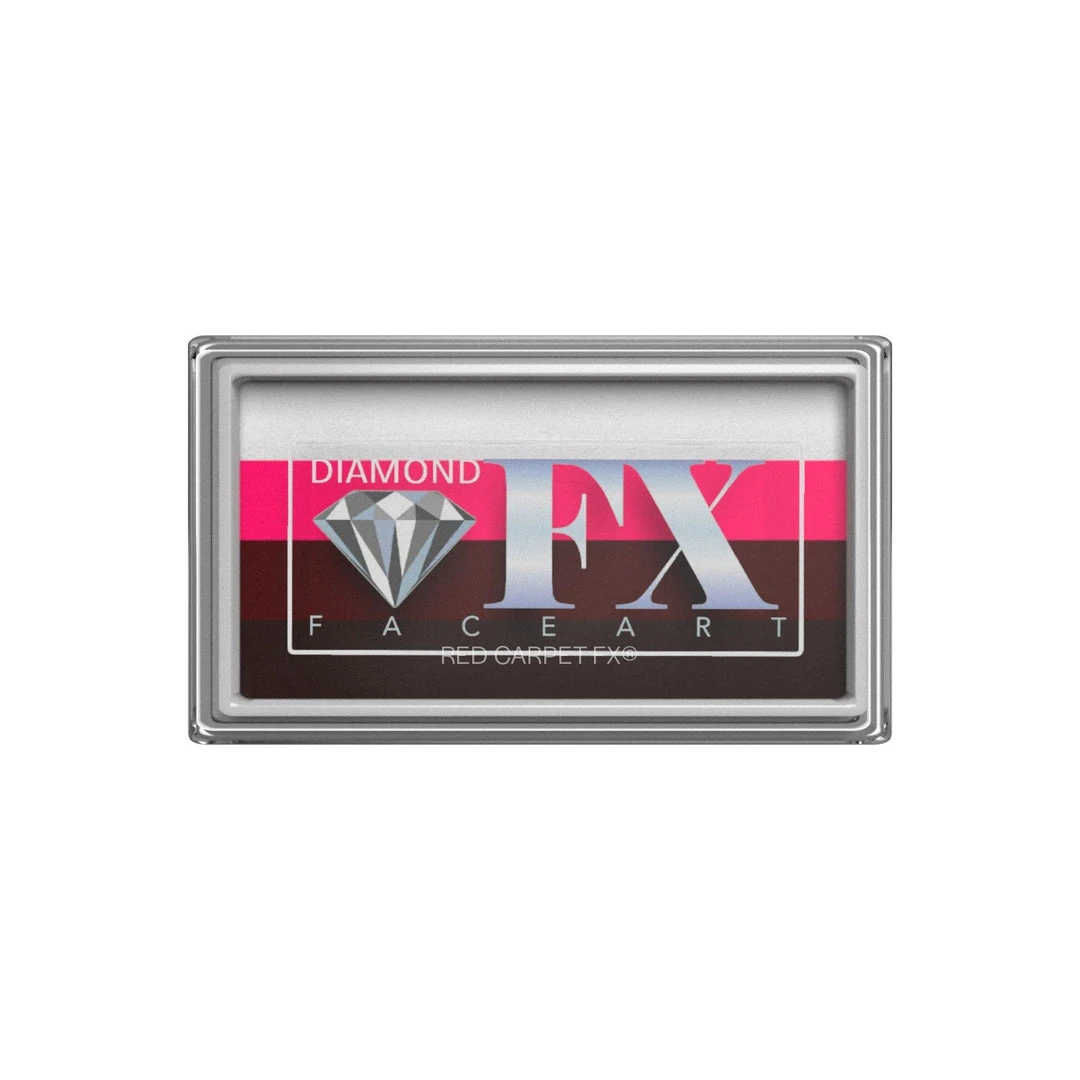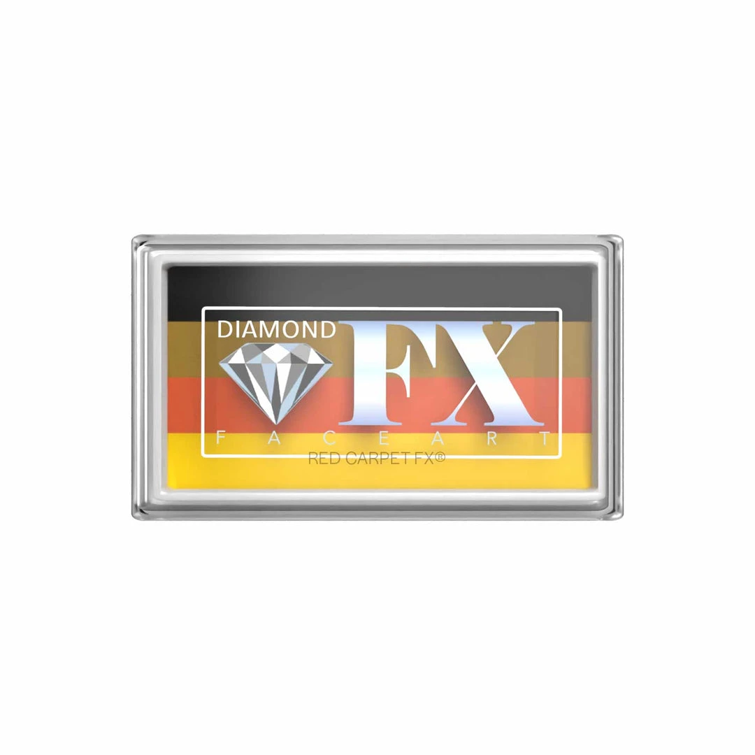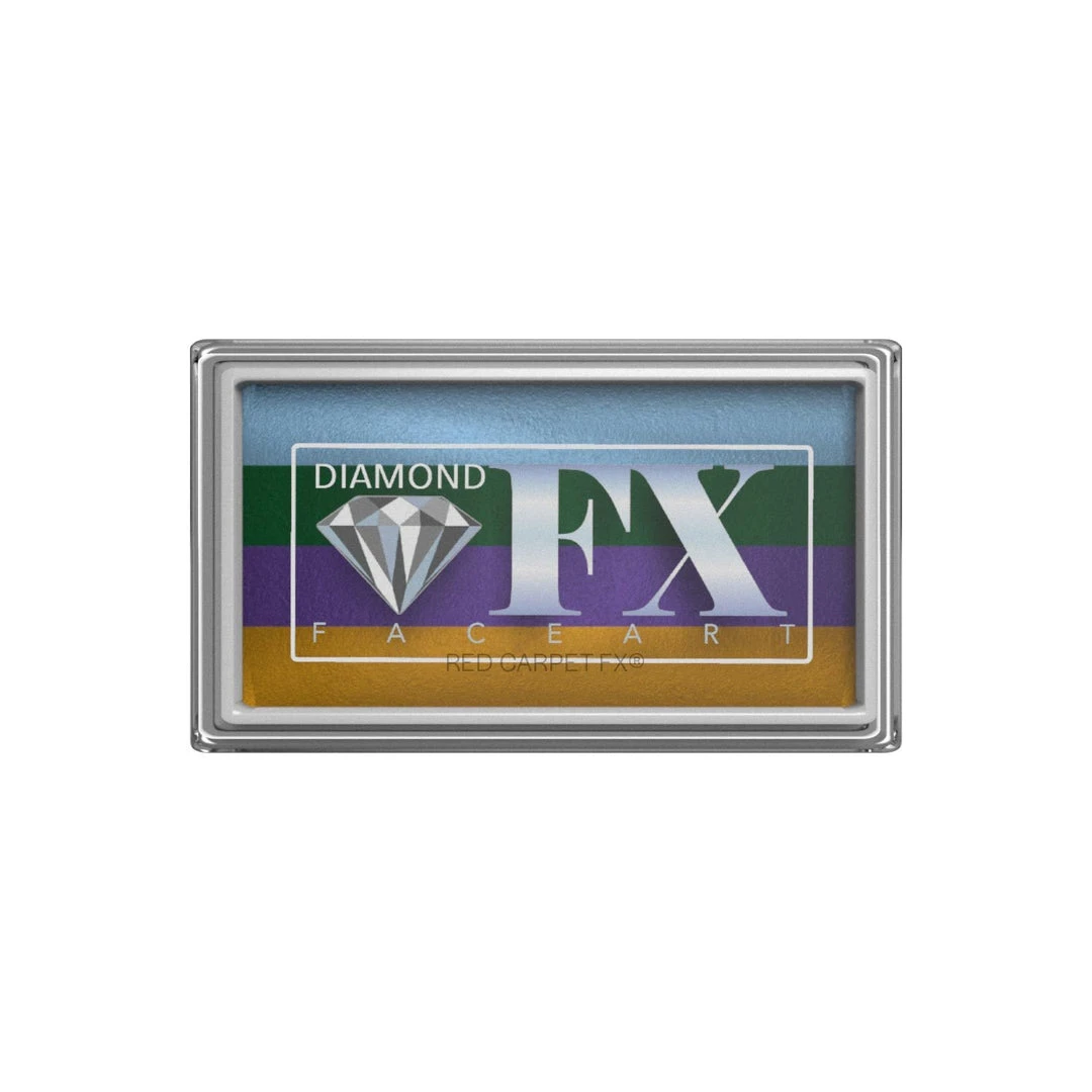 A incredibly efficient and dazzling way to create amazing designs and patterns in one stroke; Diamond FX One Stroke Split Cakes are ideal for creating multicoloured stripes and patterns that can be used to create dazzling designs, such as flowers, butterflies, unique textures and more. Diamond FX is a water-based professional face and body paint that has an advanced formula with incredibly high coverage and intense concentration of pigmentation; it is incredibly popular amongst professional face paint artists.