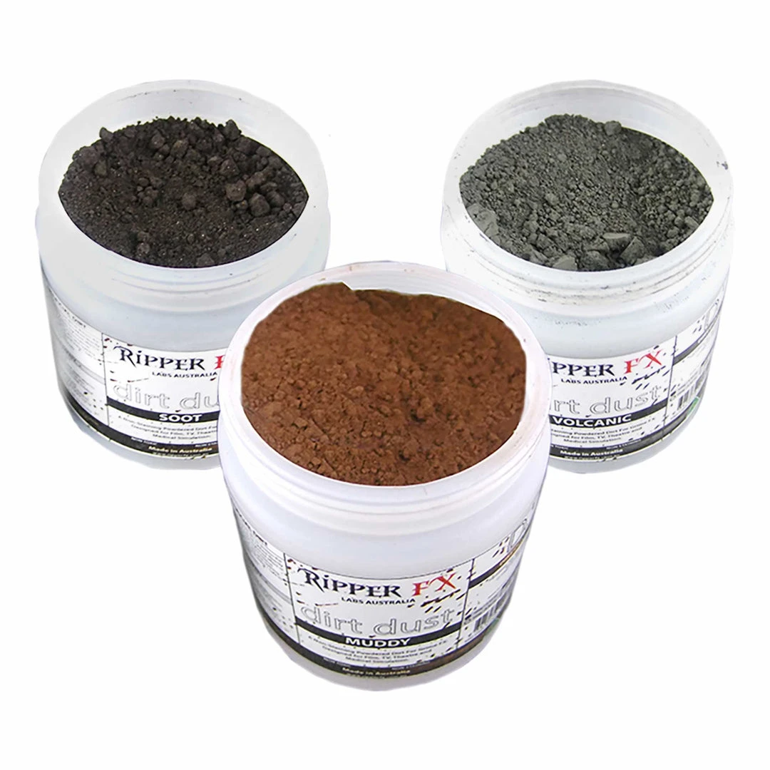 Ripper FX Dirt Dust is a pure pigment designed for film, TV and Theatre to simulate dirt. This unique powder can be added to puffer bags, sprinkled on the skin, blown through a puffer in order to add a film of dust to the skin.