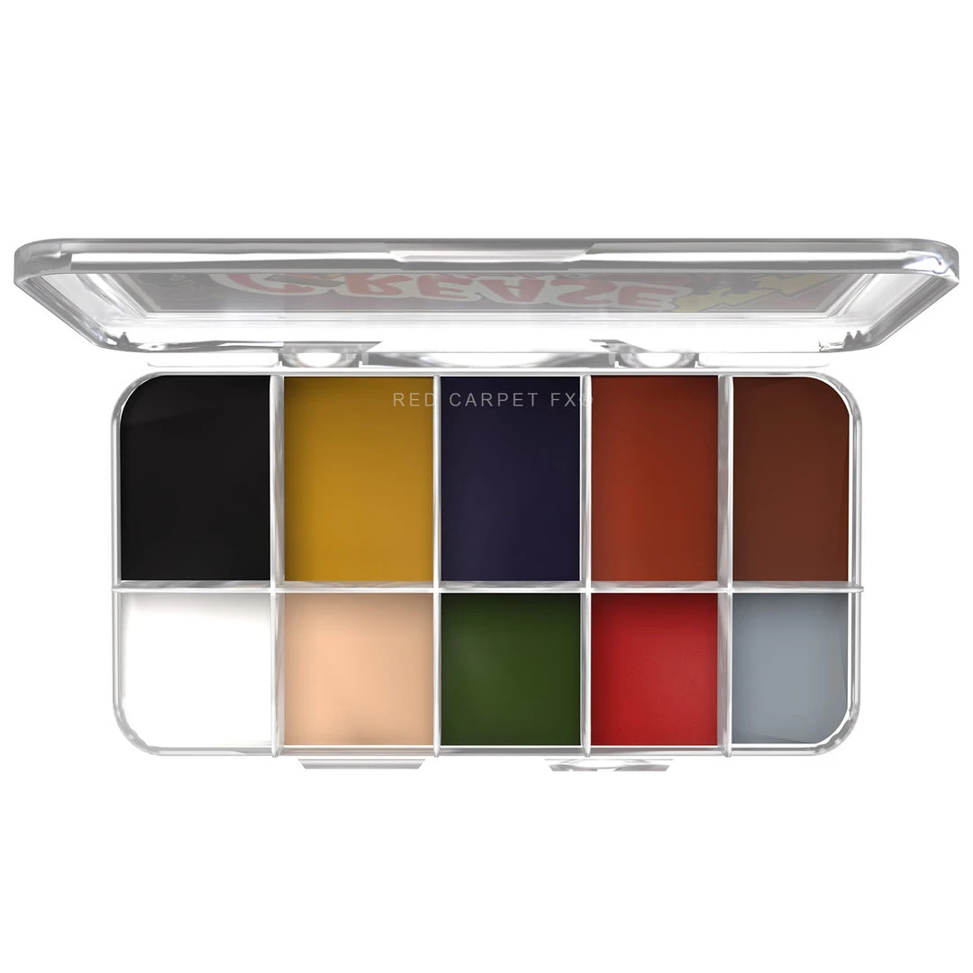 10 fantastic colours in a durable grease paint palette. This grease paint palette blends onto the skin beautifully, without colours running together. Containing 10 fantastic colours including white, black, yellow, blue, beige, red, green and grey.