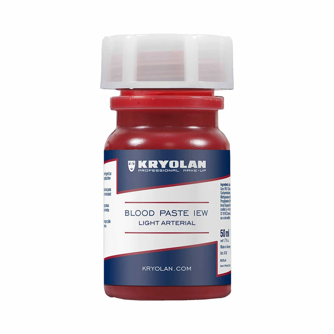 Kryolan Blood Paste is an artificial blood paste for creation of static lacerations, cuts, gashes, grazes and other wounds. Available in either Dark Venous or Light Arterial.