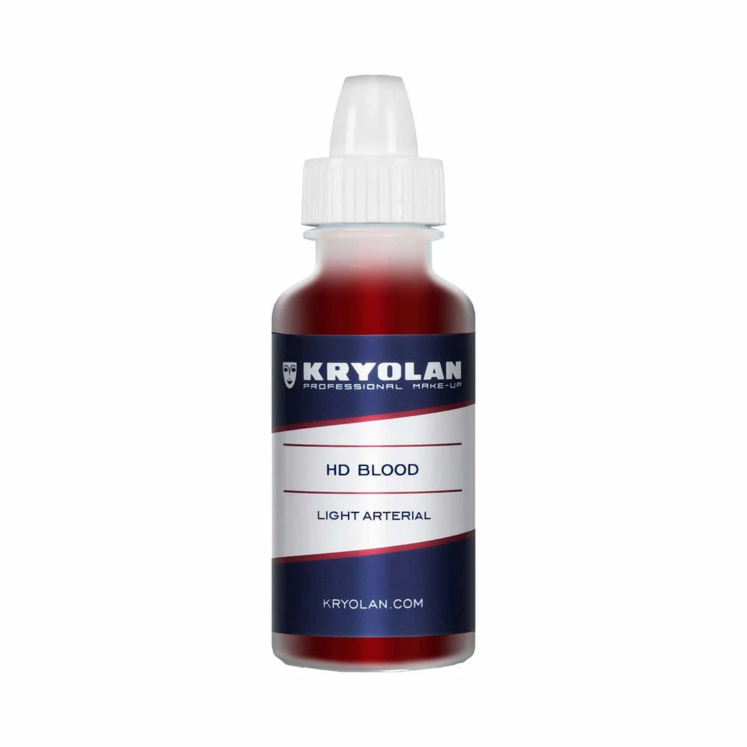 HD Blood is engineered by Kryolan in cooperation with world leading special effects make up designers. It is a perfect imitation of human blood for high definition cameras and filming. Path tracing, specialised opacity and colour gradients are optimized for sensitive cameras and result in a very realistic blood effect in direct observation.