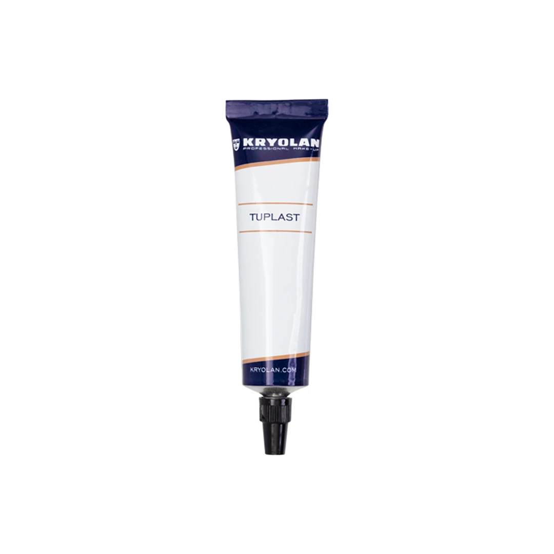 Tuplast is a product developed for make-up artists for creation of especially realistic scars and other skin anomalies. Tuplast is based on a synthetic material that is also used in dental practice. Tuplast is applied directly from the tube and can be easily shaped with a spatula after it has begun to dry. After Tuplast has completely dried, scars and other skin anomalies created with it are waterproof. They can be removed by being simply pulled off. Supracolor and Dermacolor are especially effective for making up Tuplast creations. Since Tuplast contains a strong component of acetone, be especially careful when using it near mucous membranes and eyes.