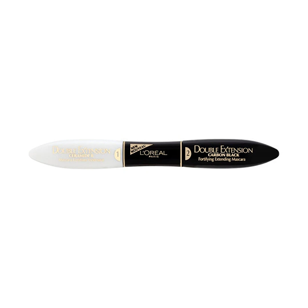L’Oréal Paris Double Extension Mascara is a 2 step Mascara which is composed of a conditioning white base coat with Ceramide R which contains fibres that act like extensions to visibly lengthen the appearance of your lashes. A lengthening Mascara with a patented brush which evenly distributes intense colour from root to tip, with virtually no clumping.