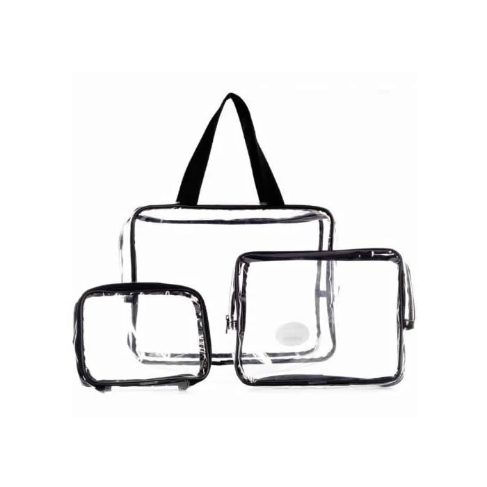The 3 piece PCV travel bag is the perfect travel companion for any makeup enthusiast! You can store toiletries, makeup and all can be located very easily due to the see through PVC.