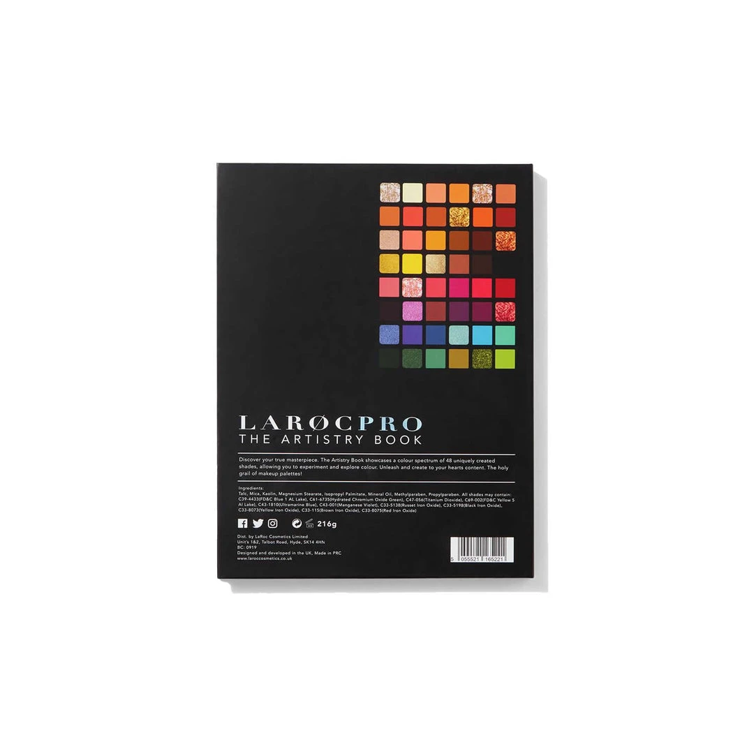 The Artistry Book by LaRoc Pro showcases a colour spectrum of 48 uniquely created shades, allowing you to experiment and explore colour. With 34 buttery mattes accompanied by 14 extra dimensional pressed foils; unleash and create to your hearts content.