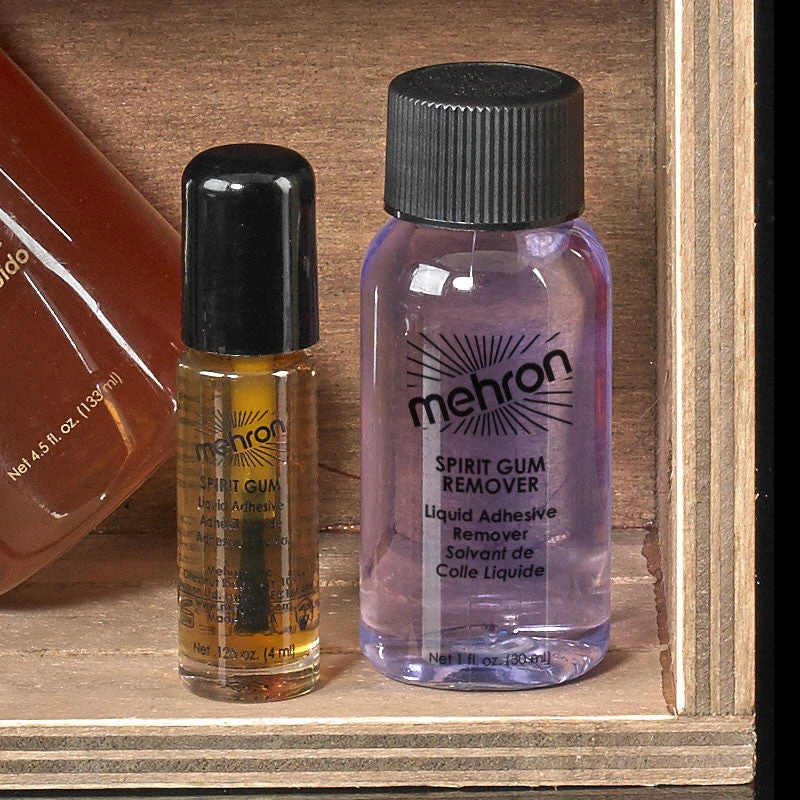 Spirit Gum Adhesive has been used throughout the theatre and film Industries for decades. It is the most popular adhesive for special FX. Mehron Spirit Gum Remover is gentler on your skin than other removers. Spirit Gum Remover by Mehron is a specially developed solvent to gently remove make-up adhesives.