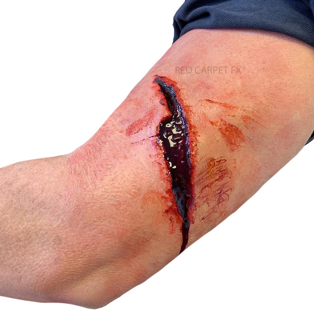 Monster FX prosthetics are high quality and highly detailed lacerations, wounds and bites available in a choice of low-cost, high skin compliance gelatine or professional grade, high precision, lightweight silicone.