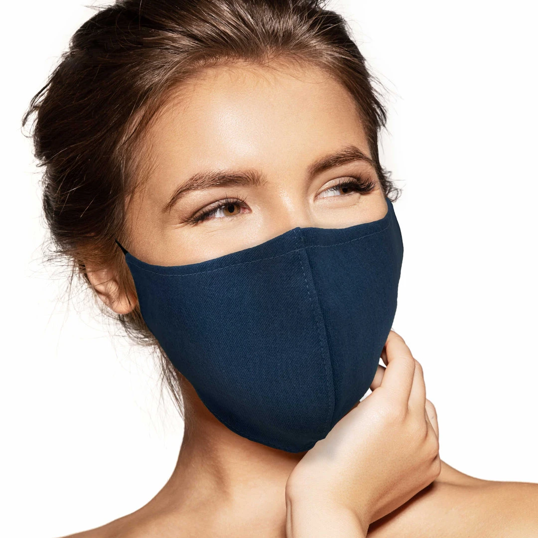 Classic plain navy blue colour is ideal for all clothing, styles and settings. Introducing handmade cotton smooth contoured face masks expertly crafted by Pebbles of Leeds.