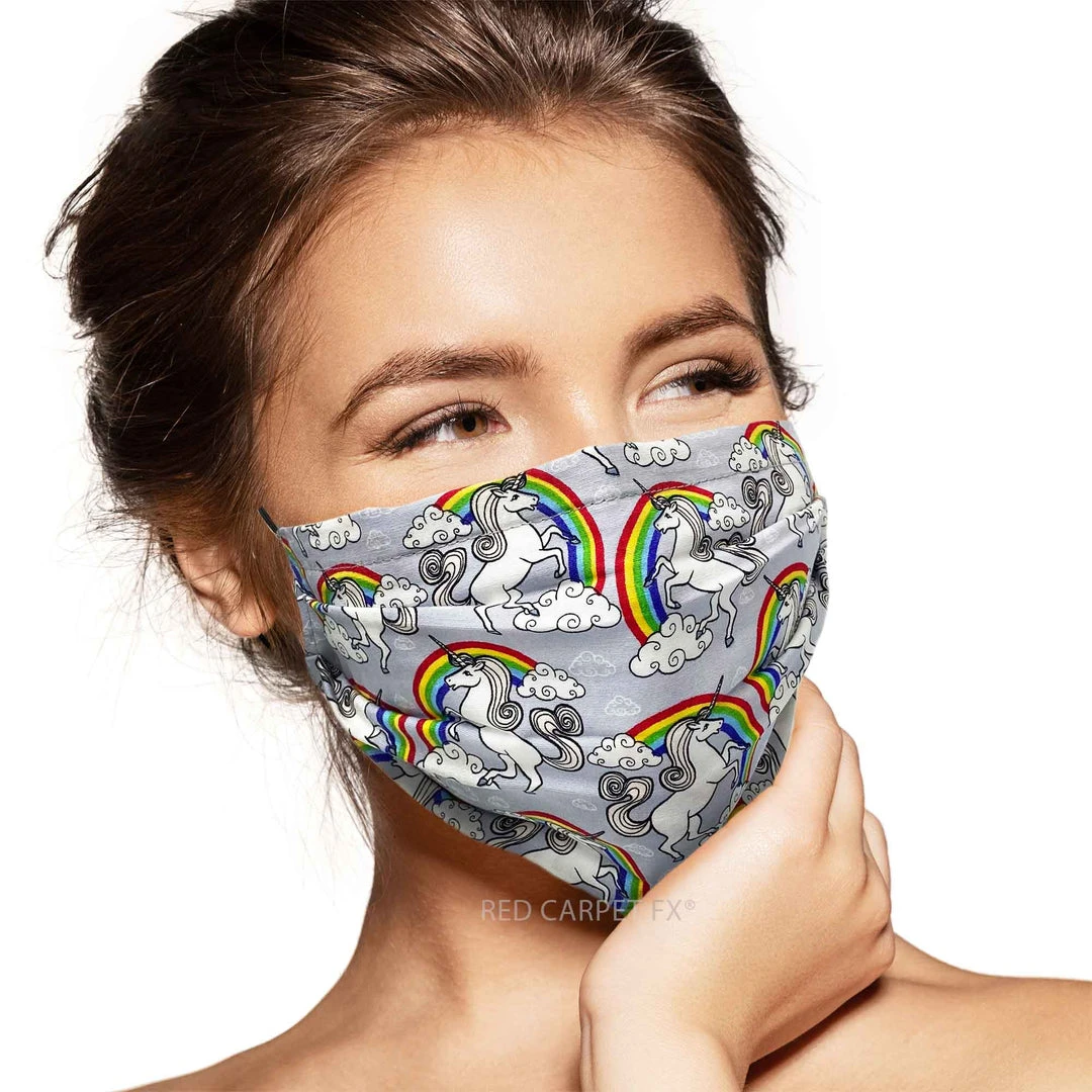Bright and colourful; the Unicorns pattern features everything you need to face a gloomy day including vivid rainbows, fluffy clouds and rearing unicorns on a very light blue material. Introducing handmade cotton face masks expertly created by Pebbles of Leeds.