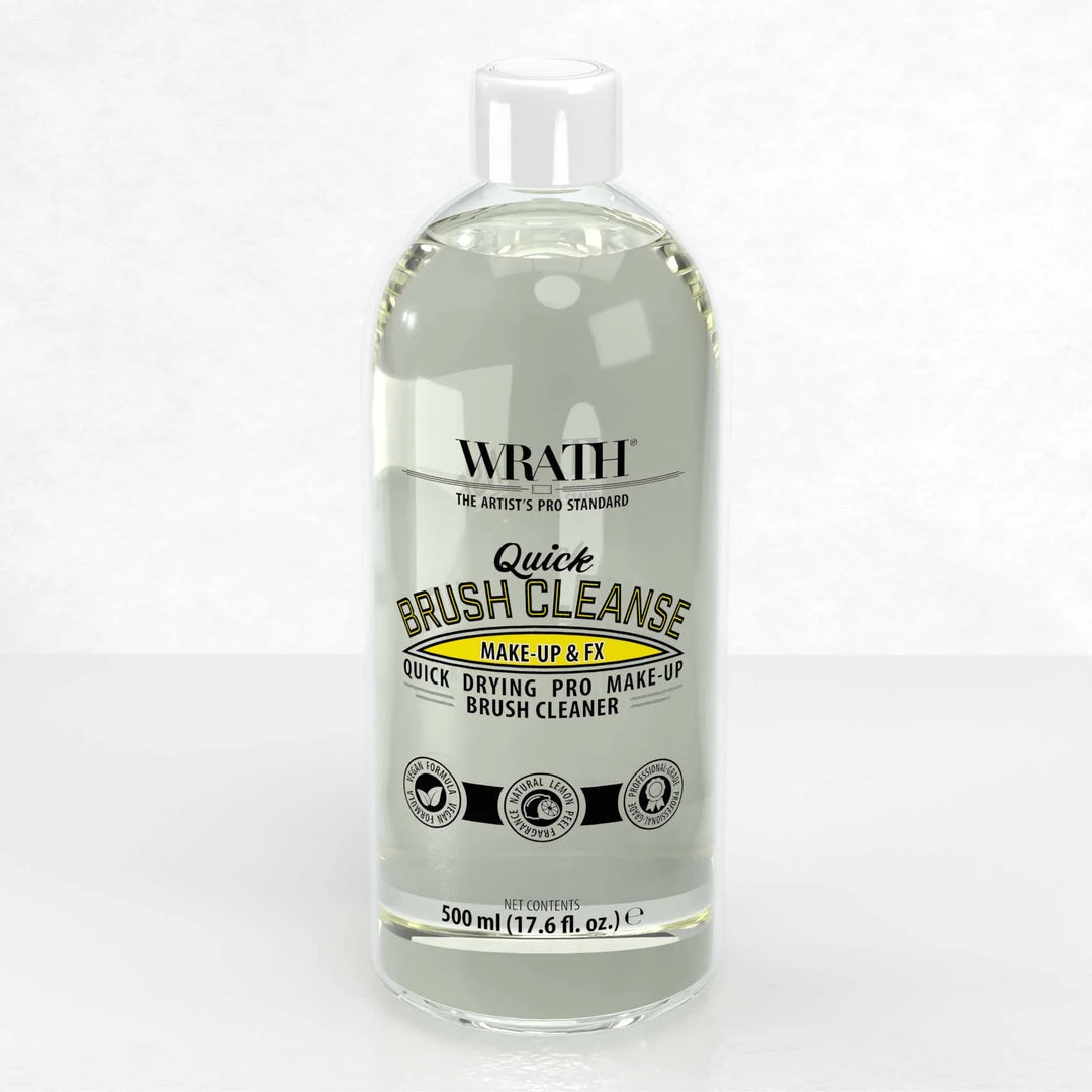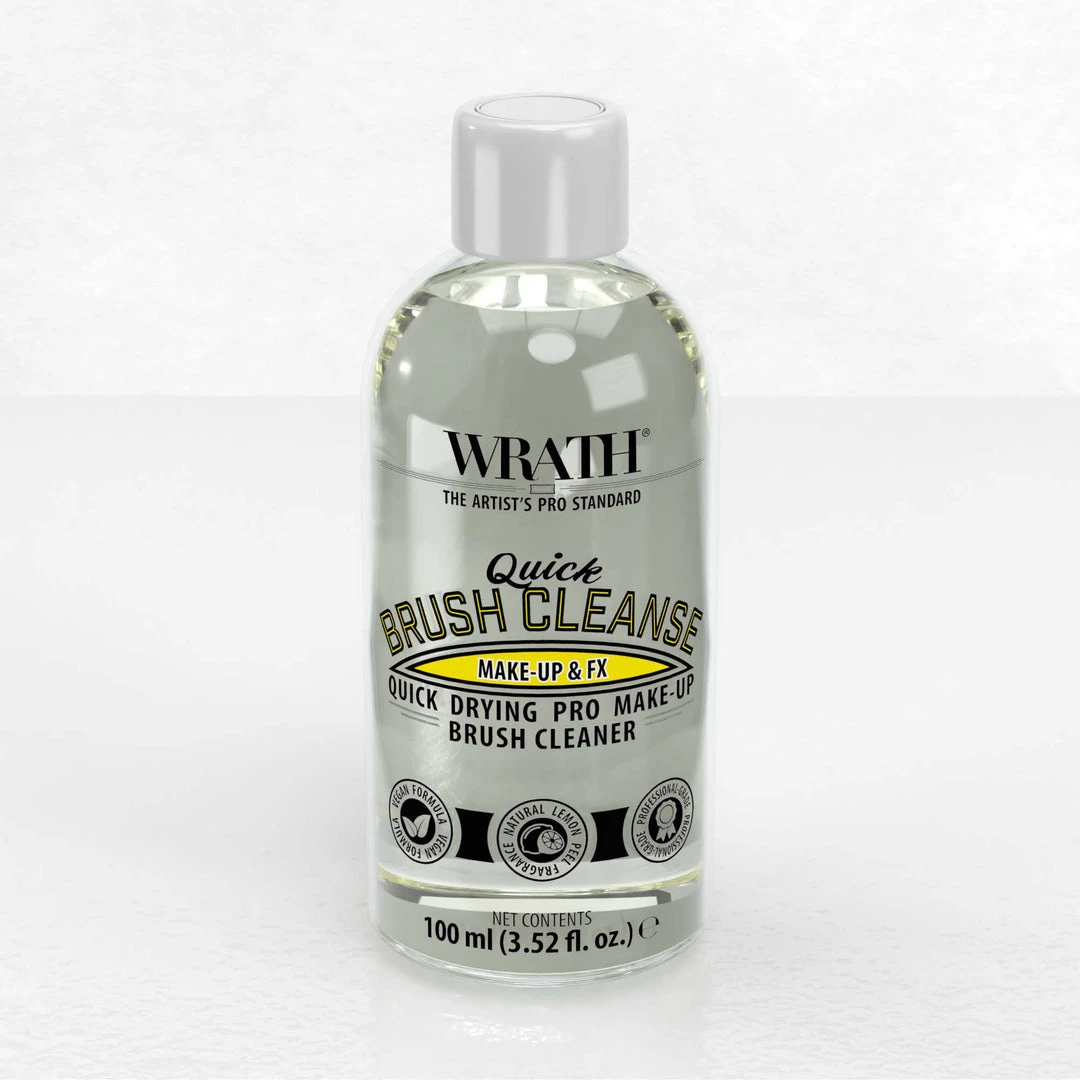 WRATH Brush Cleanse is a universal quick drying brush cleaner for synthetic or natural bristled make-up and special FX brushes.