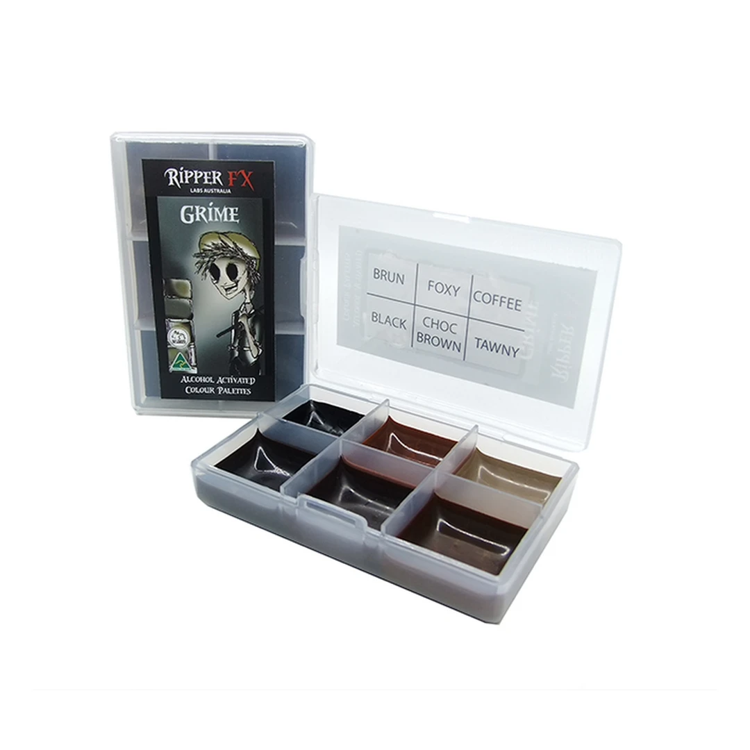These dry palettes are activated with 99% isopropyl alcohol. They can be used to create strong opaque or sheer washes of colour. They are suitable for use on skin, foam latex, geletine and silicone. The result is a colour that looks like it is part of the skin, not laid on the top like traditional grease make-up.