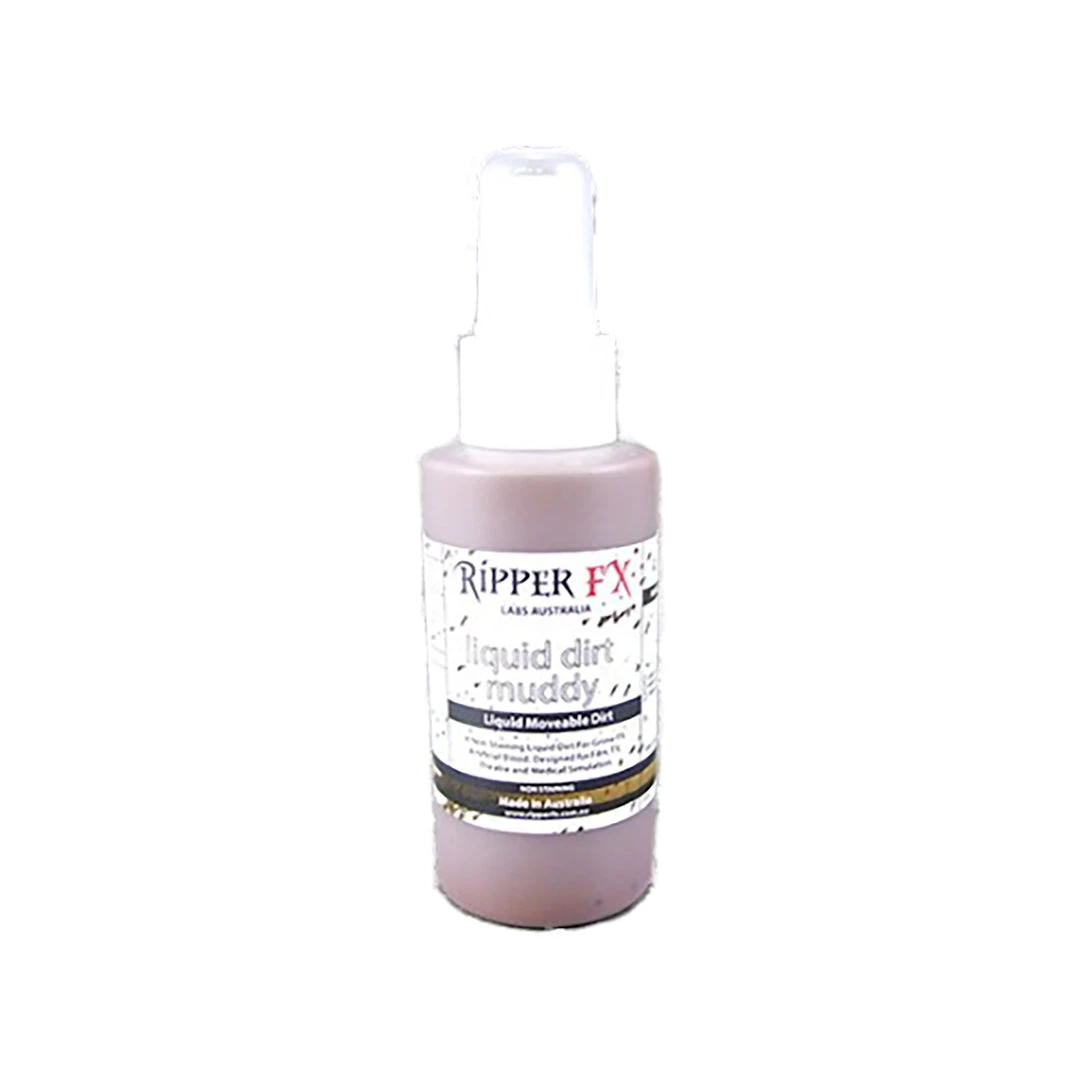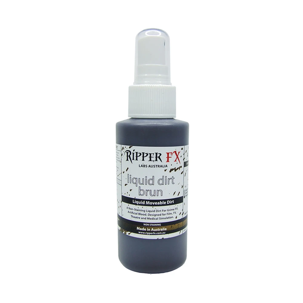 A liquid mud for creating in ground dirt and grime effects on skin and costume.