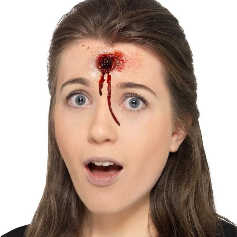 Smiffys Make-up FX Hole in the Head is a latex prosthetic that simulates a bullet hole. ideal for fancy dress, parties and Halloween. Includes an adhesive.