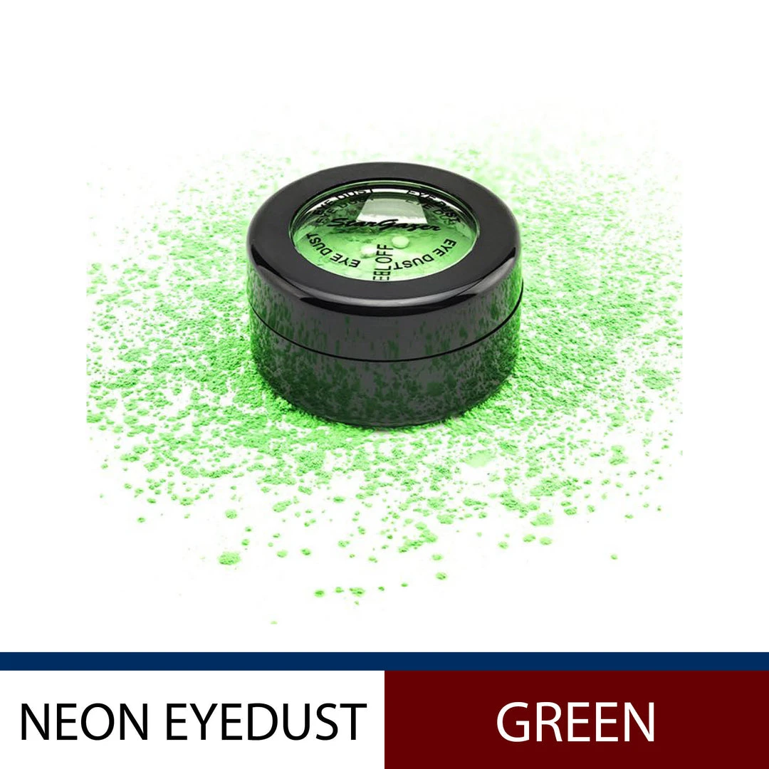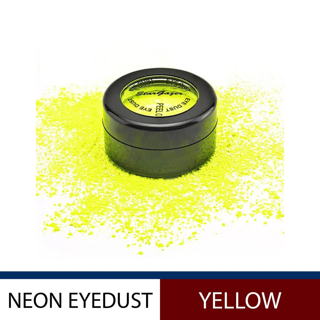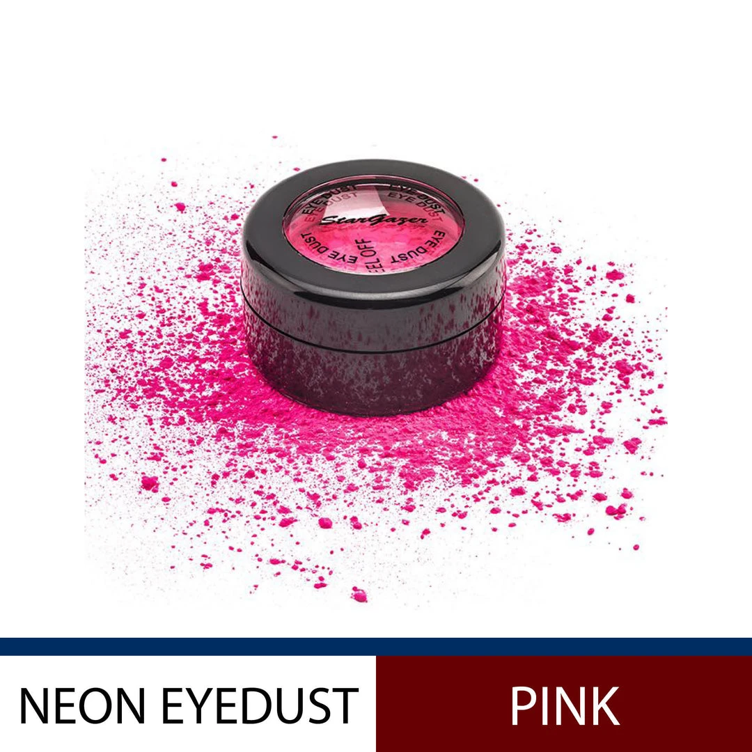 The Neon Eye Dust is made from hyperpigmented neon loose eye shadow powder. The eye dust is vegan, paraben free and cruelty-free. The neon eye shadow pigment reacts to glow under UV black lights to fluoresce with bright colour.