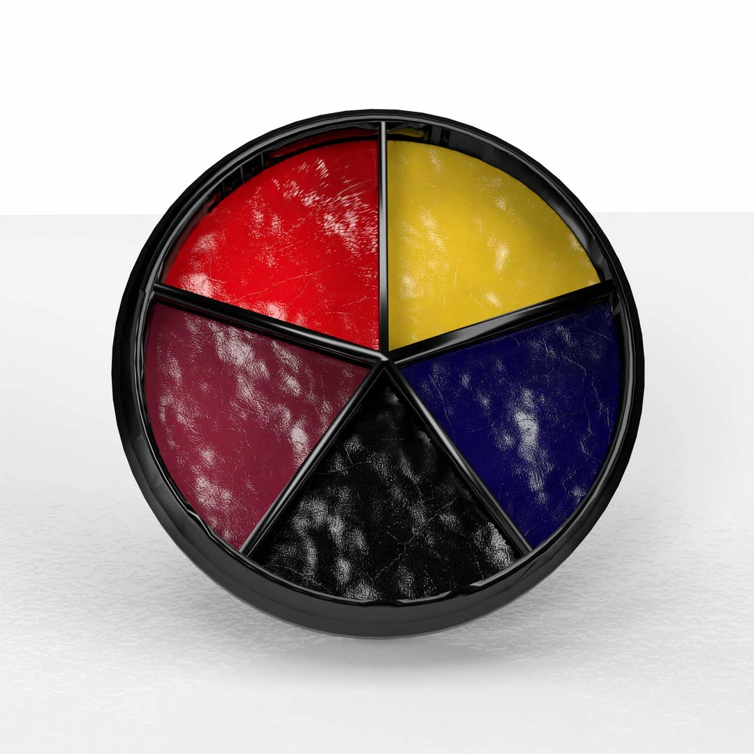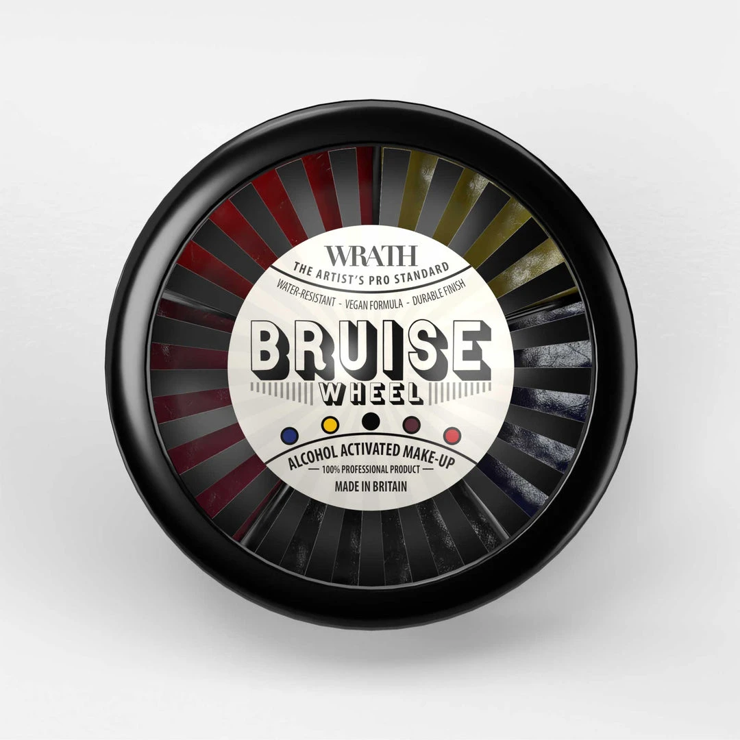 The Bruise Wheel is an handy, durable ultra-compact palette for bruising, contusion and general injury needs. Featuring red, yellow, blue, black and a deep purple. Requires WRATH Alcohol Activator to use (sold separately).