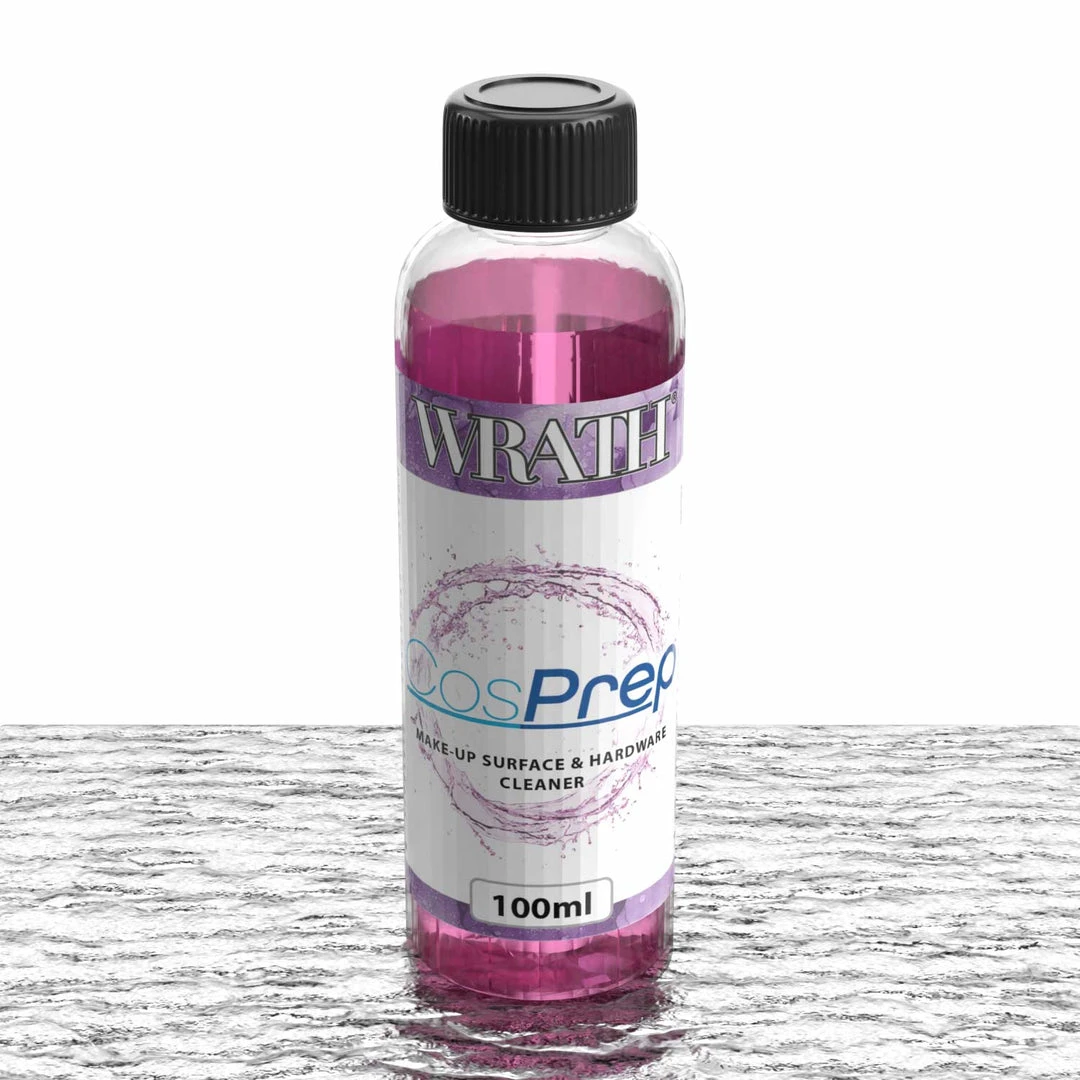 CosPrep™ by WRATH Cosmetics in an all-in-one surface and equipment disinfecting solution. Made to medical grade formula standards, the unique CosPrep™ formula containing a hospital standard alcohol content, successfully destroys 99.9% of microbes it comes into contact with.