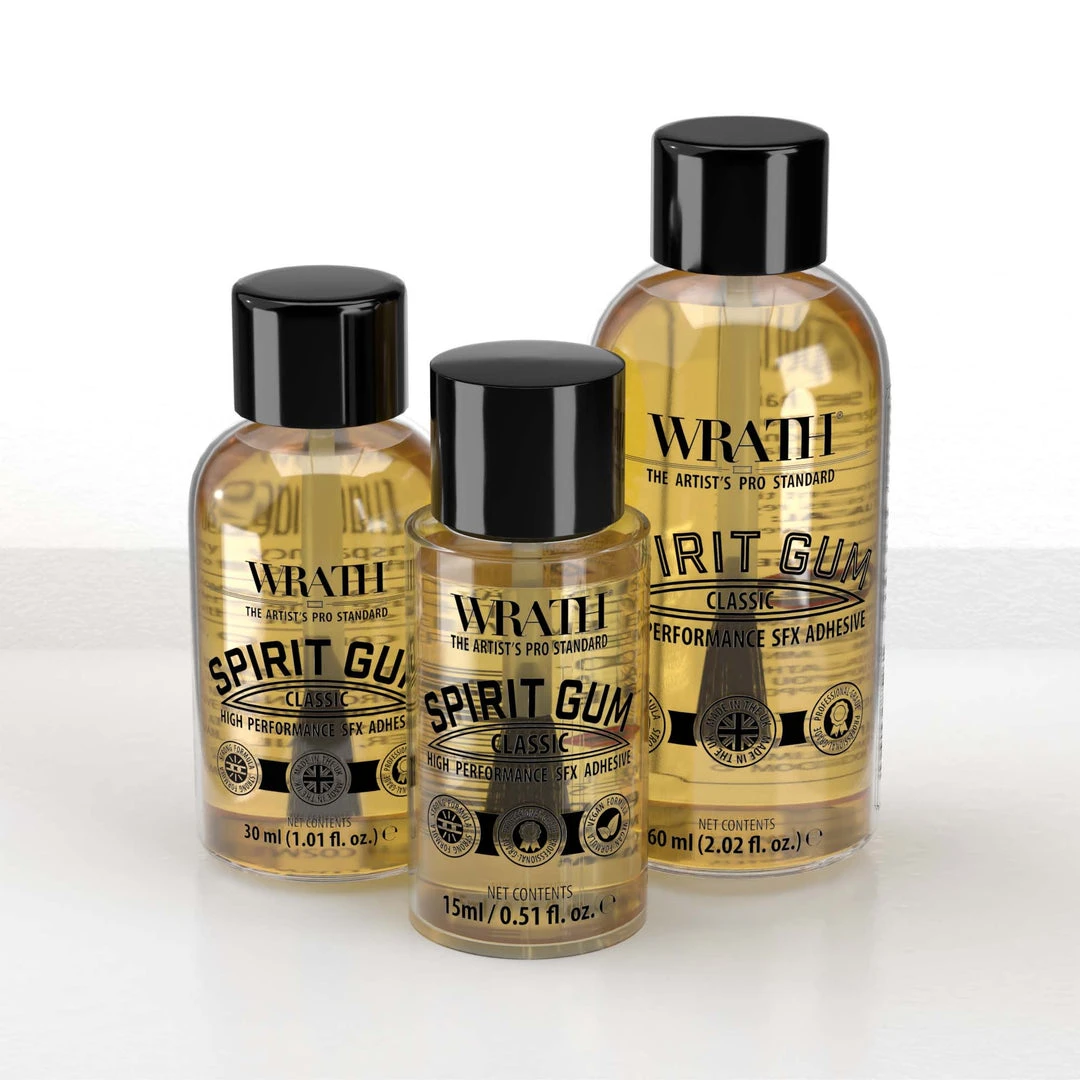 Featuring a classic formula that has been tested, refined and perfected over many years. WRATH Spirit Gum is a high-performing special FX adhesive for skin that is ideal for the application of crepe hair, prosthetics, lace beards and wigs.