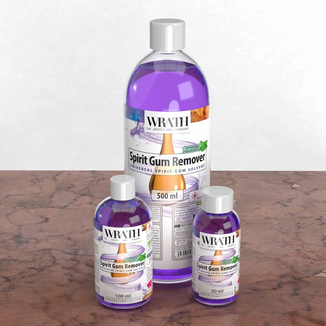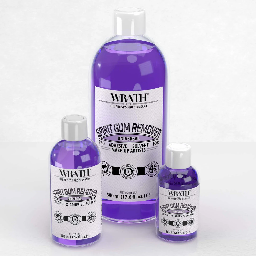 WRATH Spirit Gum Remover is a highly effective solvent for all spirit gum and mastix adhesives. Suitable for use on skin, most silicone, latex or wax prosthetics and crepe hair.